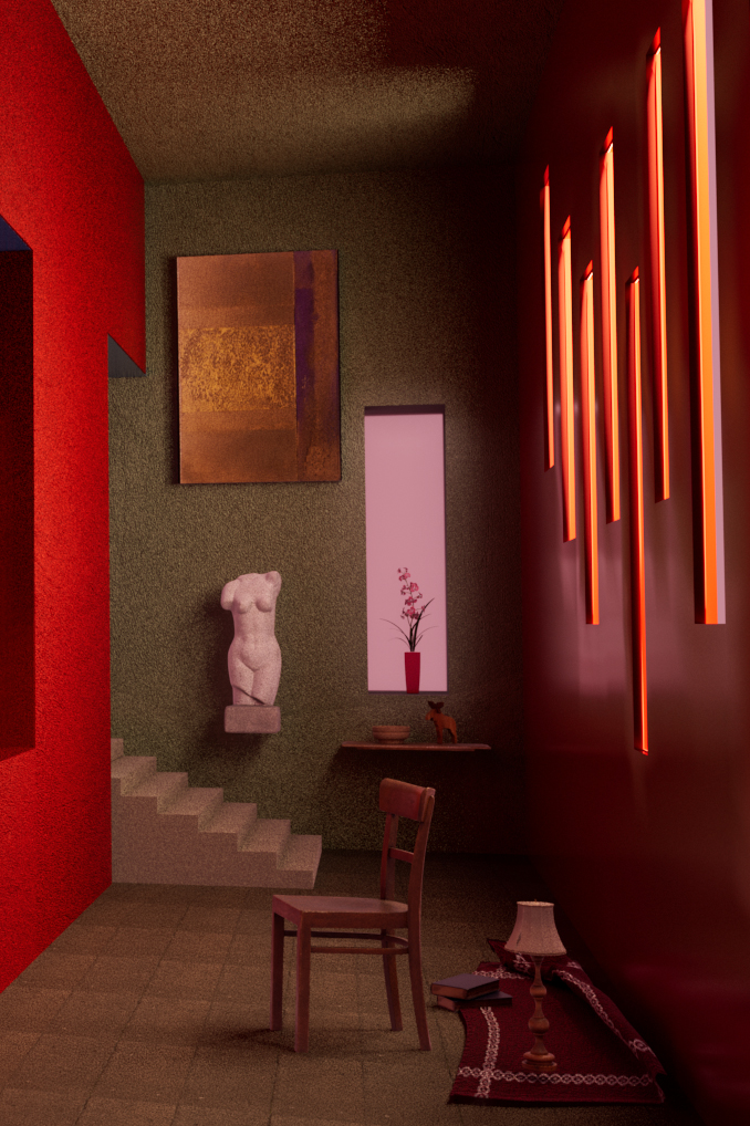 "Gallery Apartment" is a exploration of the future intersection between art and virtual reality, delving into the transformative experience of living within a gallery in the digital realm. In this digital art piece, I hope to push the boundaries of the private and public spheres, navigating the increasingly blurred line between reality and virtuality. The project is inspired by the lighting effects from the installation by Nancy Holt and the composition of the image of a house designed by Luis Barragan.