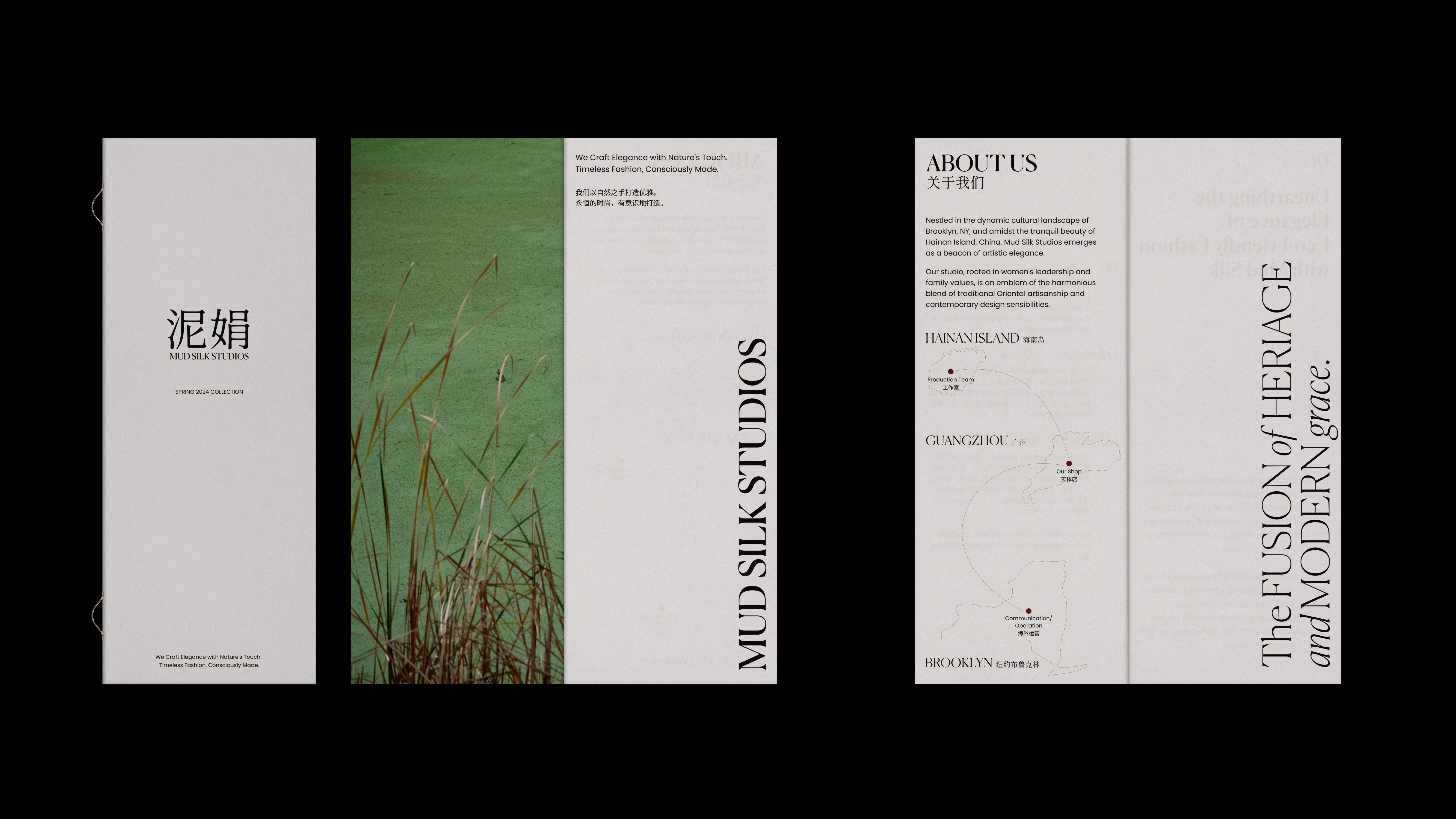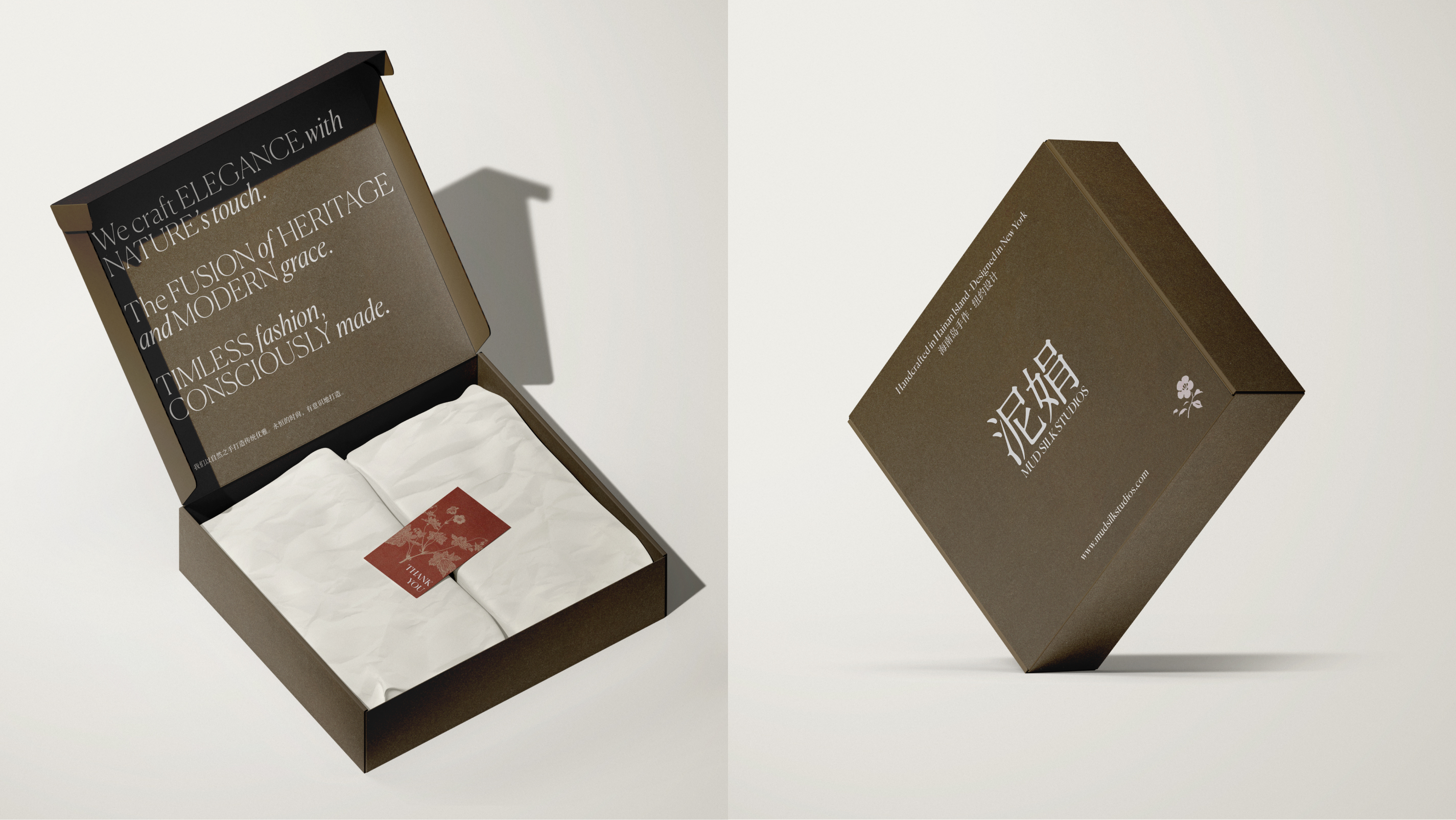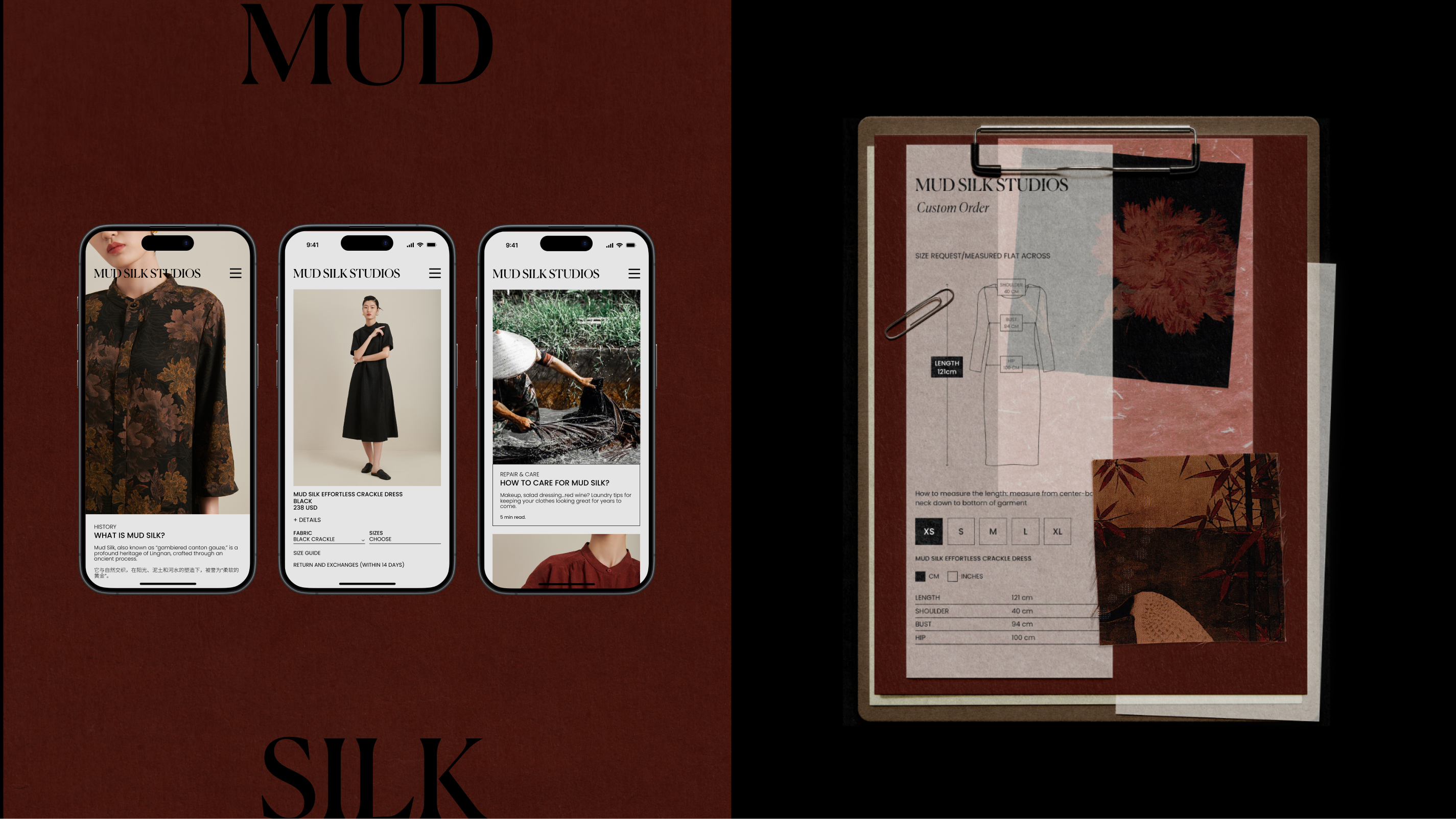 Mud Silk Studios' branding design fuses ancient technique with modern minimalism, encapsulating an eco-luxury fashion narrative. The brand's voice is carried through natural serene, mud silk products, production process visuals and simplicity, calmness of design that speak to a legacy of crafted elegance and thoughtful consumption. This entry distills the essence of Mud Silk Studios—timeless garments for the conscious collector.